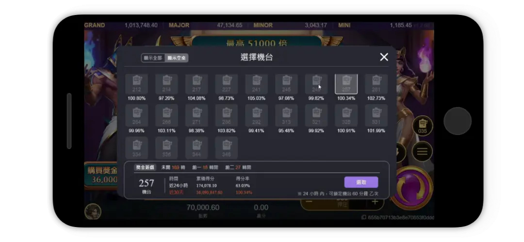 - 3. 近24小時累積得分:選擇近24小時內累積得分在10萬分以上的機台。高累積得分通常意味著該機台具有較高的出分潛力。